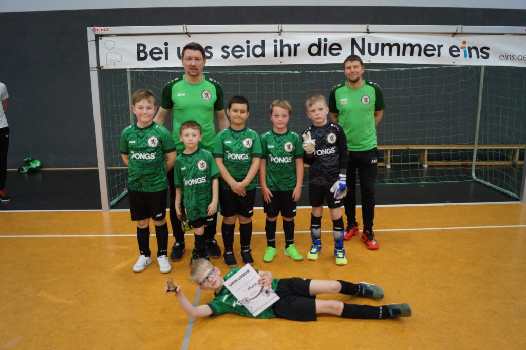 Auch an diesem Wochenende hieß es für unsere F-Jugend wieder Schuhe binden und ab zum nächsten Hallenturnier. Dieses Mal hatten wir es nicht weit, den dieses Mal waren wir der Gastgeber beim Erdachsen-Cup. Zu Gast waren neben unseren beiden Vertretungen des VfB Pausa-Mühltroff I und II, der 1.FC Wacker Plauen II, die SG Kürbitz und der SC Syrau. Gleich im Eröffnungsspiel trafen unsere beiden Teams aufeinander und am Ende hieß es 4:0 für den VfB Pausa-Mühltroff I. Als nächstes war wieder die 1.Mannschaft gefragt, diesmal gegen den SC Syrau. Dieses Spiel war an Spannung kaum zu überbieten, nach einem kurzen abtasten die ersten guten Chancen, leider trafen wir hier nur den Pfosten oder verfehlten das Tor nur knapp. So kam es wie es kommen musste und der SC Syrau ging mit 0:1 in Front, aber unsere kleinen gaben nicht auf. Durch einen Doppelschlag drehten wir die Partie zum 2:1, welcher ebenfalls durch den SCS ausgeglichen wurde. Nun ging es hin und her, 30 Sekunden vor Schluss hatten wir die große Chance in Führung zugehen, jedoch verpassten wird den Abschluss und liefen in einen Konter der dem SCS den 2:3 Sieg bescherte. Im nächsten Spiel traf der VfB II auf den 1.FC Wacker Plauen II. Lange Zeit sah es nach einer 0:1 Niederlage aus bis kurz vor Schluss der Ball aus spitzem Winkel den Weg ins Tor fand und das Spiel 1:1 endete. Jetzt war wieder der VfB I gefragt der Gegner ebenfalls der 1.FC Wacker Plauen II, den wir am Ende 3:0 bezwingen konnten. Für den VfB II kam es jetzt zum aufeinander treffen mit dem SC Syrau. Hier konnten wir lange Zeit die Null halten, da unsere Spieler mit sehr viel Herz verteidigten, am Ende aber konnten wir dem Druck nicht standhalten und verloren 0:3. Aber die kämpferische Einstellung war dennoch lobenswert. Nun wieder zum VfB I der im letzten Spiel auf die SG Kürbitz traf. Mit einem Sieg wäre man sicher zweiter, somit gingen die kleinen offensiv ans Werk und gewannen 5:0. Nun kommen wir ebenfalls zum letzten Spiel des VFB II. Hier war die Ausgangslage ebenfalls klar, ein Sieg und man klettert auf den dritten Platz. Der Gegner die SG Kürbitz nutze aber eine Unachtsamkeit in der Hintermannschaft und ging mit 0:1 in Führung. Jetzt war die Einstellung unserer kleinen gefragt, um das Ruder rumzureißen. Hier zeigte sich wieder einmal des Kämpferherz der Spieler, es wurde kein Ball mehr verloren gegeben und wir konnten uns mit zwei Toren belohnen. Womit am Ende der 2:1 Sieg gefeiert werden konnte. Somit konnten wir uns auf heimischem Parkett den zweiten und dritten Platz sichern. Dieses Mal gab es nicht nur Pokale für die kleinen, sondern auch den Trainern wurde für ihr Ehrenamt gedankt und somit erhielt jeder Trainer eine echte Erdachsensalamie. 🙂 Am Ende Blicken wir auf ein faires Turnier zurück mit strahlenden Kindergesichtern.